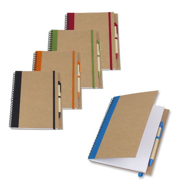 מחברת ספירלה עם עט מקרטון ממוחזר ודפי שורה