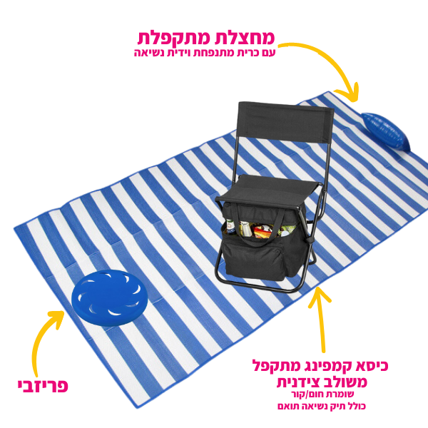 * כיסא קמפינג מתקפל משולב צידנית שומרת חום/קור, כולל תיק נשיאה תואם