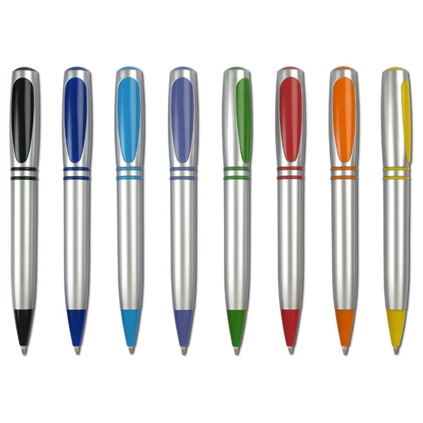 קליפי סילבר – עט כדורי פלסטי כסוף משולב אבזור צבעוני