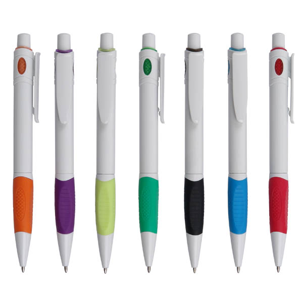עט כדורי לבן עם גריפ גומי בשילובי צבעים